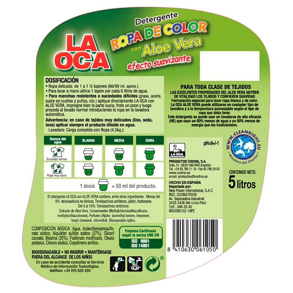 Detergente líquido con extracto de Aloe Vera para un resultado extra en suavidad para el lavado de ropa color en lavadoras automáticas. Detergente con Efecto suavizante. Gracias a su fórmula mejorada, obtén hasta 100 lavadas. Un producto libre de fosfato, amigable con el medio ambiente.